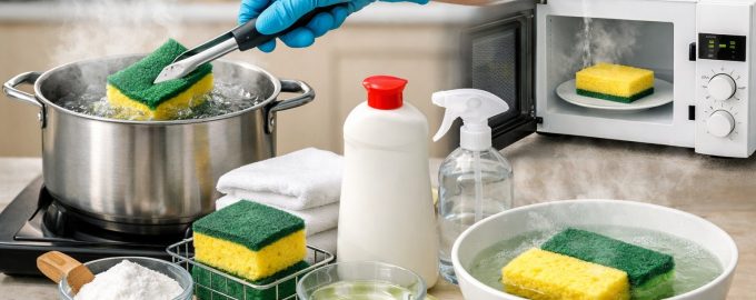 Για μια καλή απολύμανση, είναι σημαντικό να επηρεάσετε το παθογόνο μικροχλωρίδα υψηλές θερμοκρασίες ή επιθετικά περιβάλλοντα. Υπάρχουν αρκετοί αποδεδειγμένοι τρόποι για να παρατείνετε τη διάρκεια ζωής του σφουγγαριού σας και να διατηρήσετε την υγιεινή της κουζίνας σας: