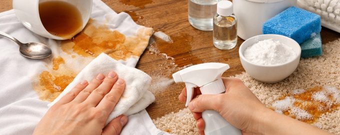 Επιτραπέζιο αλάτι. Λειτουργεί ως απορροφητικό, αντλώντας την υγρασία μαζί με τα σωματίδια της βαφής από τις ίνες του χαλιού ή της ταπετσαρίας του καναπέ.