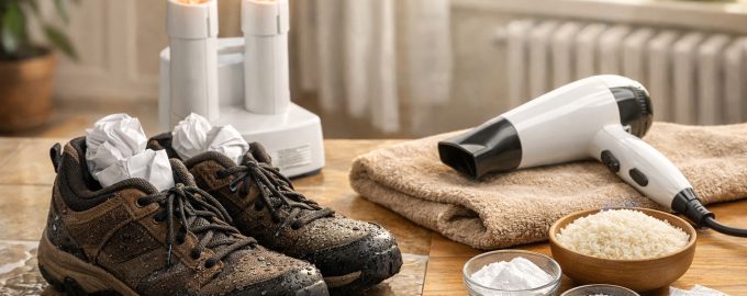 Χαρτί εφημερίδων. Μια παλιά αλλά αξιόπιστη μέθοδος. Γεμίστε τα παπούτσια σφιχτά με καθαρό χαρτί. Αυτό τραβάει το νερό από το υλικό, αποτρέποντας τη στρέβλωση και τη μούχλα.