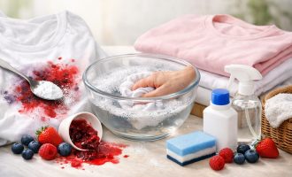 Μαγειρική σόδα: Φτιάξτε έναν πηχτό χυλό από μαγειρική σόδα και νερό, απλώστε τον στην προβληματική περιοχή και αφήστε τον μέχρι να στεγνώσει. Η μαγειρική σόδα λειτουργεί ως απορροφητικόΤο προϊόν μπορεί να χρησιμοποιηθεί για την απορρόφηση υπολειμμάτων χρωστικών ουσιών και οσμών.