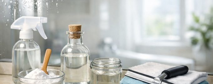 Διάλυμα ξιδιού: αναμείξτε συνηθισμένο επιτραπέζιο ξύδι με νερό σε ίσες αναλογίες. Αυτό το φάρμακο είναι εξαιρετικό στη διάλυση των αλάτων που συχνά εμφανίζονται στους καθρέφτες του μπάνιου.