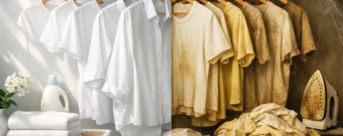 Η ποιότητα του νερού της βρύσης επηρεάζει άμεσα το χρώμα των υφασμάτων. Υψηλή περιεκτικότητα σιδήρου ή μαγγάνιο προκαλεί το λευκό ύφασμα να παίρνει μια σκουριασμένη ή γκριζωπή απόχρωση. Επιπλέον,