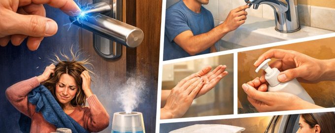 Ξηρός αέρας. Αυτός είναι ο πρωταρχικός καταλύτης. Η εσωτερική υγρασία λειτουργεί ως φυσικός αγωγός, επιτρέποντας στα φορτία να “ρέουν” σταδιακά από τις επιφάνειες. Σε ένα ξηρό περιβάλλον, ιδίως κατά τη διάρκεια της περιόδου θέρμανσης, ο ηλεκτρισμός συσσωρεύεται στο δέρμα και τα ρούχα πολύ πιο γρήγορα.