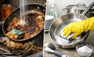 Μόλις απαλλαγείτε από τα μαύρα άλατα, είναι σημαντικό να τα απομακρύνετε εντελώς μυρωδιά καψίματος. Μπορείτε να σκουπίσετε το τηγάνι με κατακάθι καφέ ή να αφήσετε ένα κομμένο κρεμμύδι μέσα για λίγο. Για να αποφύγετε μελλοντικό κόλλημα, οι έμπειροι μάγειρες συνιστούν να ξεπλένετε το τηγάνι με παγωμένο νερό πριν ρίξετε γάλα μέσα σε αυτό.