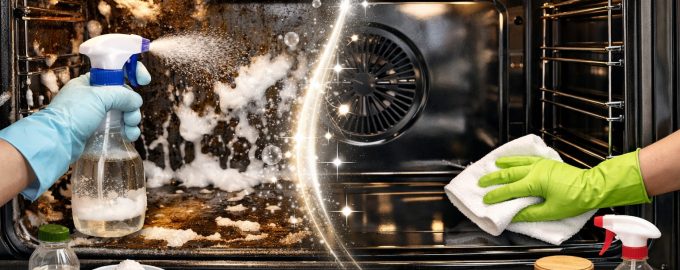 Αν προτιμάτε μεθόδους φιλικές προς το περιβάλλον, δώστε προσοχή στα μέσα που υπάρχουν σε κάθε ντουλάπι της κουζίνας. Η βασική αρχή εδώ είναι η δημιουργία ατμόλουτρου ή ενεργού αφρού που μαλακώνει τη βρωμιά.