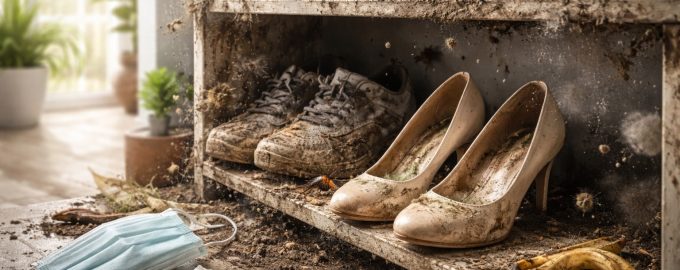 Κάθε φορά που επιστρέφουμε από το δρόμο, φέρνουμε στις σόλες των ποδιών μας. κοκτέιλ χημικών ουσιών, βαρέα μέταλλα και οργανικά κατάλοιπα. Στον περιορισμένο χώρο του ντουλαπιού ή της γαλότσας, τα σωματίδια αυτά στεγνώνουν και μετατρέπονται σε λεπτή σκόνη.