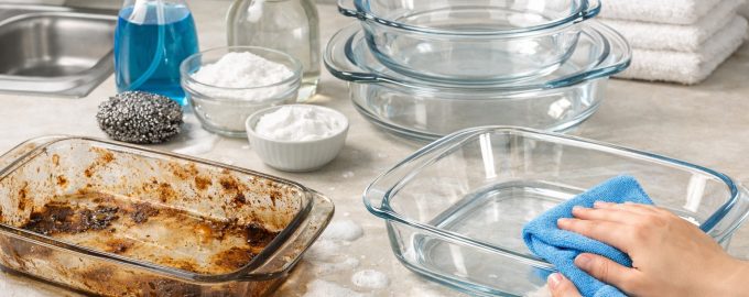 Οι περισσότερες βρωμιές στο γυαλί μπορούν να αφαιρεθούν με απλά συστατικά που βρίσκονται σε κάθε ντουλάπι της κουζίνας. Το κύριο μυστικό έγκειται στο χρόνο έκθεσης: πρέπει να δοθεί στο γυαλί η ευκαιρία να “δώσει” τη βρωμιά.