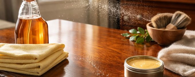 Για την τακτική απομάκρυνση της σκόνης και της ελαφριάς βρωμιάς, είναι καταλληλότερα τα ήπια διαλύματα που δεν ξηραίνουν το ξύλο.