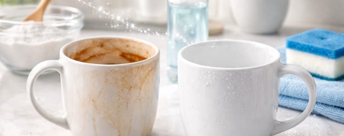 Η πιο δημοφιλής και προσιτή μέθοδος αντιμετώπισης της βρωμιάς είναι η συνήθης μαγειρική σόδα. Λειτουργεί ως ένα ήπιο λειαντικό που αφαιρεί μηχανικά τη χρωστική ουσία χωρίς να γρατζουνίζει την επιφάνεια των περισσότερων κούπες.