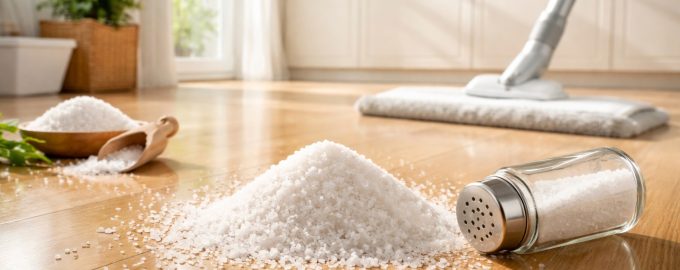 Ένα άλλο συνηθισμένο πρόβλημα κατά τον καθαρισμό των δαπέδων είναι οι δυσάρεστοι λεκέδες λευκοί λεκέδεςπου μένουν πίσω όταν στεγνώνουν το νερό ή τα προϊόντα σαπουνιού. Το αλάτι βοηθά να μαλακώσει το νερό