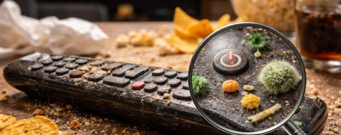 Έρευνα μικροβιολόγων αποκαλύπτει συγκλονιστικά αποτελέσματα: η επιφάνεια ενός συνηθισμένου τραπεζιού του καφέ μπορεί να περιέχει μια περισσότερα βακτήρια από ό,τι το χείλος μιας λεκάνης τουαλέτας.. Ο λόγος είναι απλός – το αντικείμενο αυτό αλλάζει χέρια, πέφτει συχνά στο πάτωμα, στριμώχνεται στις χαραμάδες του καναπέ και σπάνια απολυμαίνεται. Σε αντίθεση με ένα smartphone, το οποίο σκουπίζουμε περιστασιακά, το τηλεχειριστήριο συσσωρεύει ίχνη από λίπος του δέρματος, σκόνη και υπολείμματα φαγητού για χρόνια.