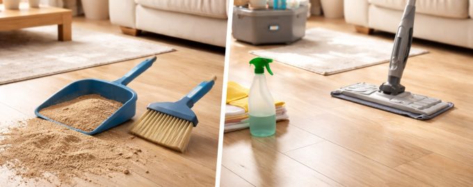 Un grave errore è quello di passare subito uno straccio bagnato. L’acqua trasforma la sabbia in fango liquido, che intasa le fughe e le microfessure. La prima cosa da fare è raccogliere particelle secche. Lo strumento ideale per questo è aspirapolvere con ugello per superfici dure. Una scopa normale spesso solleva la polvere nell’aria, che poi si deposita di nuovo, ma se non avete un aspirapolvere, usate una spazzola con un pelo morbido e fitto. Spostatevi dagli angoli al centro della stanza per evitare di spargere i detriti lungo il perimetro.