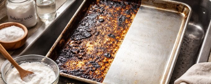 Ένας βρώμικος δίσκος ψησίματος με ενσωματωμένο λίπος είναι ένας πόνος για κάθε νοικοκυρά, επειδή είναι δυσάρεστο να μαγειρεύει σε τέτοια σκεύη και είναι μακρύ και δύσκολο να τα καθαρίσει. Πολλοί αρπάζουν αμέσως την επιθετική χημεία, αλλά για να επιστρέψει το μεταλλικό παρθένα λάμψη μπορεί να επιτευχθεί με απλά προϊόντα που μπορείτε να βρείτε σε κάθε κουζίνα. Η μέθοδος αυτή λειτουργεί ακόμη και με επίμονες βρωμιές που φαίνονται απελπιστικές.