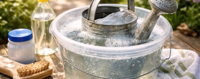 Η διαδικασία καθαρισμού δεν απαιτεί αποσυναρμολόγηση της κατασκευής. Αρκεί να βυθίσετε το ποτιστήρι σε ένα δοχείο με διάλυμα, ώστε το υγρό να καλύψει πλήρως τα ακροφύσια και να το αφήσετε για αρκετές ώρες. Το οξύ αντιδρά με το ασβέστιο, διαλύοντάς το χωρίς μηχανική δράση που θα μπορούσε να βλάψει την επιχρωμίωση ή τα ελαστικά ακροφύσια.