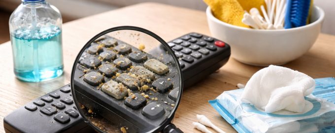Il vostro telecomando raccoglie più batteridi molti oggetti del bagno. Lo tocchiamo con le mani quando mangiamo, lo mettiamo su diverse superfici e raramente ci pensiamo. disinfezione. La polvere ordinaria si mescola al grasso della pelle formando una pellicola appiccicosa che non solo rovina l’aspetto del dispositivo, ma impedisce anche il corretto funzionamento dei pulsanti.