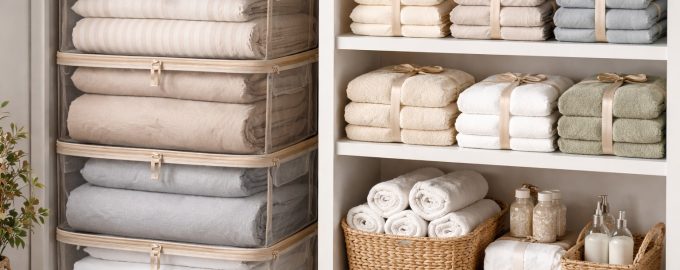 Η αποθήκευση σε δέσμες βελτιστοποιεί ωφέλιμο χώρο στα ράφια. Οι διάσπαρτες στοίβες συσσωρεύονται συχνά πλευρικά, δημιουργώντας κενά αέρα και “οπτικό θόρυβο”. Ένα σετ διπλωμένο σε ένα σφιχτό ορθογώνιο ή ρολό καταλαμβάνει έναν αυστηρά καθορισμένο χώρο.